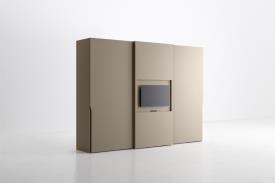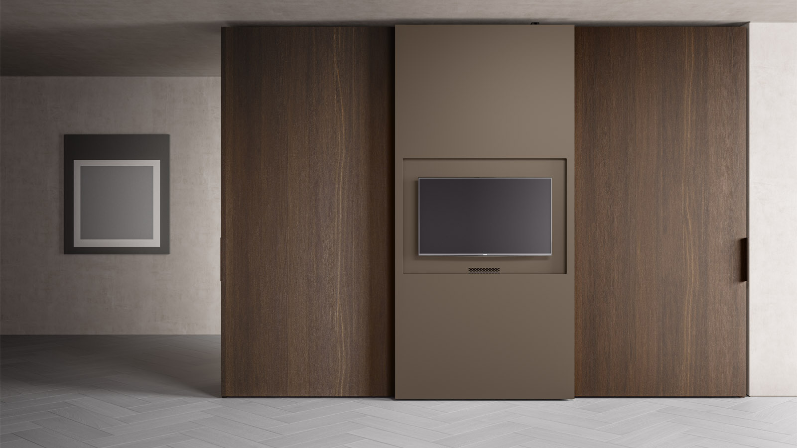 Précision, fonctionnalité et élégance. Grâce à son design linéaire et sans poignée, cette porte coulissante s'harmonise parfaitement avec les différents modèles de dressings compatibles : Amalfi, Cornice, Icona, Manhattan, Nastro, Plana, Raggio et Tratto. Le module encastré est conçu pour accueillir le téléviseur, encadré comme un tableau et faisant partie intégrante de la porte, sans en altérer le volume ni la forme. Complétez vos modules de dressing avec tous les accessoires de la collection Pianca pour un rangement impeccable.