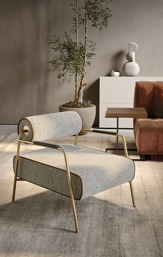 Rompant avec les codes traditionnels, son assise est réversible, offrant une double orientation. Sur les modules central et méridienne, le dossier pivotant à roulettes se déplace d'un simple geste d'un côté à l'autre. La gamme impressionnante d'options modulaires est complétée par un élément d'angle, un module d'extrémité. Tous les sièges rembourrés partagent la caractéristique de formes compactes et douces, soulignées par un passepoil en gros-grain.