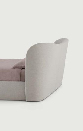 Ses formes d'inspiration classique sont à la fois solennelles, distinguées et accueillantes. La simplicité raffinée du lit Embrace évoque la chaleur d'une étreinte, un refuge paisible. La tête de lit incurvée, élément dominant du lit, enveloppe le corps principal d'une étreinte enveloppante et rassurante, offrant un soutien rassurant. La version sans coffre de rangement sous le lit peut accueillir un matelas encastré. Des pieds dissimulés surélèvent la structure de quelques centimètres, créant une impression de légèreté presque imperceptible.