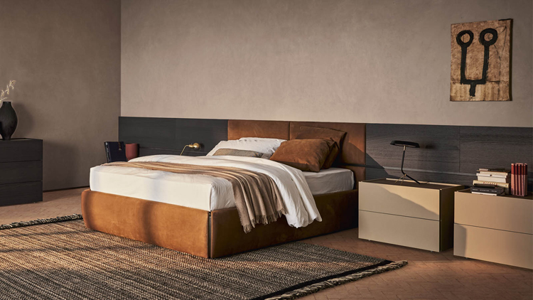 La créativité et les goûts personnels peuvent s'exprimer pleinement. Aménager une chambre, c'est composer des surfaces et choisir leurs caractéristiques grâce à un système de panneaux modulaires en bois. Disponibles en finition laquée mate ou brillante, douce au toucher, en bois, avec des finitions texturées, plaqués pierre, capitonnés ou revêtus de tissu ou de cuir, nos panneaux peuvent être équipés d'un éclairage arrière et d'entretoises aux finitions métalliques, laquées ou bois. Ils s'harmonisent avec tous les lits plateformes Pianca et s'intègrent à d'autres modules tels que des étagères et des rangements.