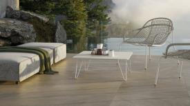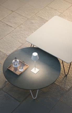 Synergie et contraste entre forme et matière : un plateau massif en grès cérame d'une seule pièce contraste avec un piètement métallique aérien et linéaire. Tel est le concept de la table Aliseo, disponible en quatre variantes – carrée, rectangulaire et ronde – et en deux diamètres. Les pieds tubulaires en acier forment un design continu, sans angles vifs. Leurs extrémités incurvées leur confèrent une parfaite stabilité en extérieur, sur les sols pavés comme sur les pelouses. Le plateau est proposé en trois coloris et la structure en finition laquée Espresso ou Seta.