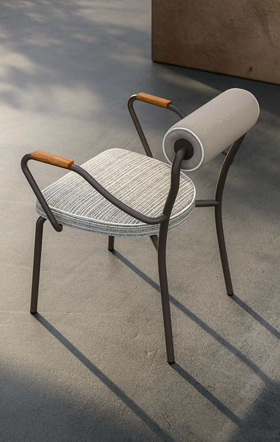 Ses atouts : un passepoil sur les bords des housses entièrement déhoussables et un dossier à coussin enrouleur, parfois repositionnable. Fabriquée avec un rembourrage en polyuréthane respirant, drainant et résistant aux intempéries, spécialement conçu pour le mobilier d'extérieur. La structure tubulaire en acier inoxydable est disponible en finition brossée ou dans les coloris Espresso et Seta. Dans le respect des principes de l'économie circulaire et du développement durable, tous les éléments de la collection sont facilement démontables.
