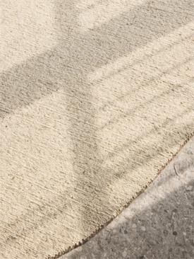 Sur l'île de Chalki, où le temps s'étire en douceur, un tapis blanc ovale, écho de pureté, se déploie comme une plage secrète. Sa laine brute, telle la roche sculptée par les vents, invite au repos. Les fils entrelacés murmurent des récits de mer et de ciel azuré, un havre de sérénité, où chaque pas est une caresse de l'âme apaisée.