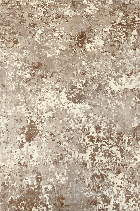 Des empreintes de petits cailloux et de grains de sable couvrent ce modèle. Les zones libres rappellent les cavités de la surface poreuse et tendre de la pierre calcaire. Le jeu des couleurs vient parfaire l'illusion des aspérités.