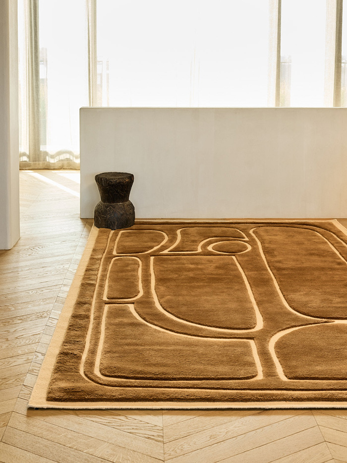 Serge Lesage Olympe, tapis de laine, est un écho des ruelles Cycladiques. Dimensions : 200 x 300 cm Ses fils symbolisent le granit reliés par des joints de chaux immaculée, une mosaïque de lumière, où chaque pas résonne comme un mythe. Les motifs, tels des vestiges antiques, racontent des histoires de soleil et de pierre, un sanctuaire de sérénité, où le temps s'arrête et l'âme s'apaise. Composition : 100% Laine de Nouvelle Zélande Qualité : Tissé main Le pourcentage de tolérance dimensionnelle est de +/- 3% tapis