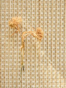 La régularité du motif révèle un tissage précis et lisible, où les fibres naturelles s’entrelacent dans un équilibre simple et apaisant.