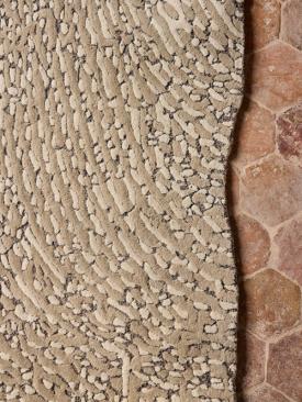 Serge Lesage Umbra s’inspire des œuvres de Olga de Amaral, où le textile s’affranchit des formes conventionnelles pour devenir matière expressive. Dimensions : 170/200/250/ x 240/300/350 cm Le tapis se déploie comme un fragment libre, animé par une surface dense et vibrante, dont le dessin organique crée une sensation de mouvement. Ses bords découpés de manière volontairement aléatoire évoquent les pièces d’Olga de Amaral, confectionnées à partir de morceaux de tissus déchirés et souvent conservées dans leur état brut. Cette irrégularité assumée confère à Umbra une dimension profondément artistique, portée par un geste instinctif et expérimental. Les contours bruts et la richesse de la texture traduisent une recherche sensible, où l’imperfection devient intention et où le textile affirme toute sa présence, à la frontière entre art et design.