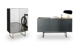 Magda est une nouvelle collection de buffets qui associe la matière et les veinures douces de la céramique effet marbre aux nuances précieuses et fascinantes des miroirs Sovet.