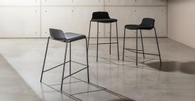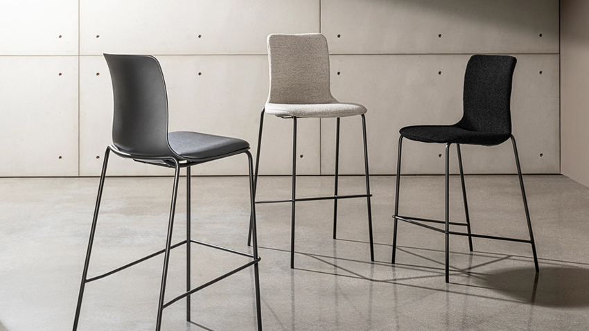 La collection Olly est complétée par de nouvelles finitions et l'introduction de tabourets disponibles en différentes hauteurs et avec plusieurs types de dossiers pour s'adapter à tous les contextes.