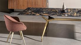 Table rectangulaire extensible avec piètement et traverse en aluminium laqué, disponible en plusieurs finitions. Plateau en verre trempé ou en céramique feuilletée, disponible en plusieurs dimensions et finitions. Structure extensible, peinte en noir.