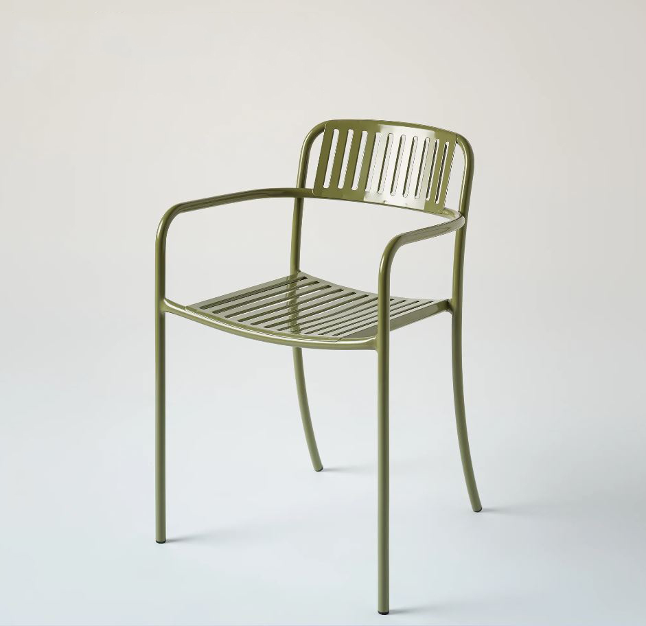 Sur des tubes très fins, une assise prédécoupée au laser est composée de lattes perforées qui ajoutent de la délicatesse à un produit robuste et durable. L’utilisation de l’acier inoxydable pour ce produit lui confère à la fois une longévité sans pareille et, par le biais d’un mécanisme de pliage sous l’assise, une résistance tout en étant léger du fait de la composition de cet alliage. Notez le tube courbé unique qui relie les pieds avant et le dossier, respectant la main de l’artiste glissant sur sa feuille à dessin sans interruption. Un beau fauteuil, digne héritier du savoir-faire artisanal de Tolix, au raffinement contemporain.