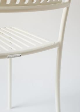 Tolix Design. Pauline Deltour - Réf. 10901-10004 Dimensions : l 36 x h 77 x p 47,5 cm La chaise Patio, conçue par Pauline Deltour et finalisée en 2024, reprend les lignes distinctives de cette magnifique collection d'extérieur. Digne héritière du fauteuil, l'absence d'accoudoirs lui confère une silhouette encore plus épurée et légère, sans rien perdre de sa féminité. Montée sur de très fins tubes, son assise prédécoupée au laser est composée de lattes perforées qui ajoutent une touche de délicatesse à un produit robuste et durable. L'utilisation de l'acier inoxydable lui assure une longévité exceptionnelle et, grâce à un mécanisme de pliage sous l'assise, une grande résistance tout en conservant sa légèreté grâce à la composition de cet alliage. La chaise Patio offre un confort incomparable. Caractéristiques Usage : Intérieur/Extérieur Stockage : Empilables jusqu'à 4 unités Assemblée : Préassemblé - Non démontable Fabriqué en France Garantie : 2 ans